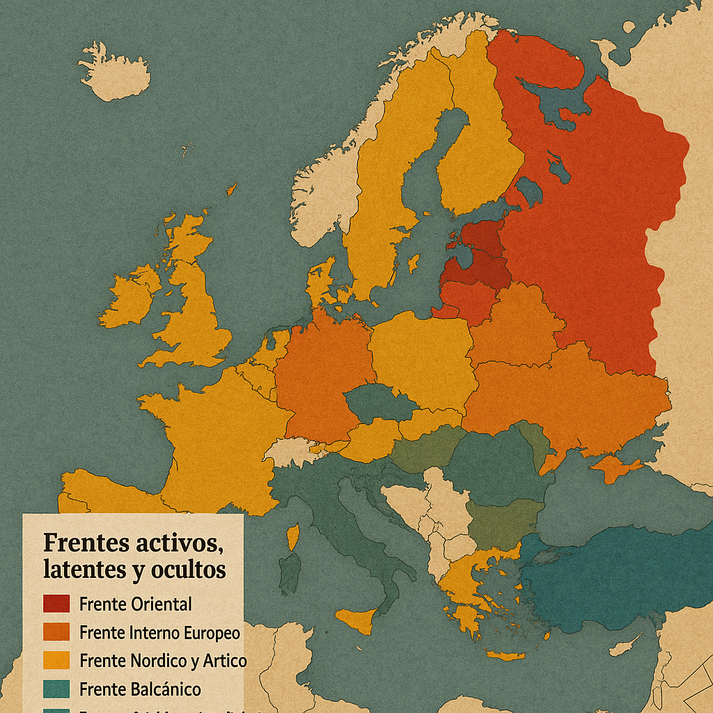 Europa no encara un frente único, sino un sistema de frentes interconectados donde la presión en un punto altera el equilibrio en los demás. El mapa realista luce así: